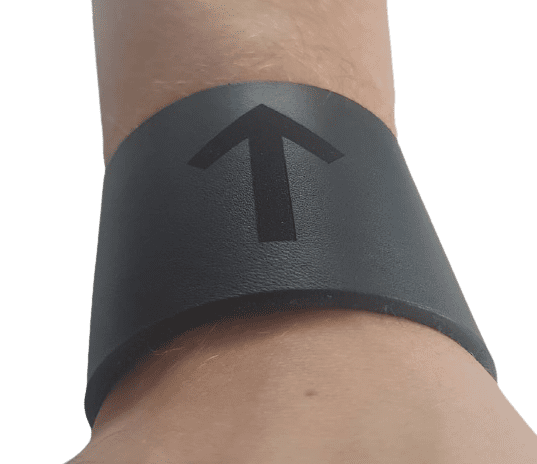 Häftigt armband i historisk stil tillverkat för hand i Sverige av Europeiskt läder. Armbandet är 18 cm långt och 6 cm brett. Baksidan har en snörjning med lädersnöre som gör att armbandet kan anpassas efter olika vristtjocklekar. Armbandet är till för att stödja vristen och skydda handleden mot skärsår. Det passar utmärkt till vandringen eller på en fisketur. Det har en Tyrruna dekorerad på ovansidan.