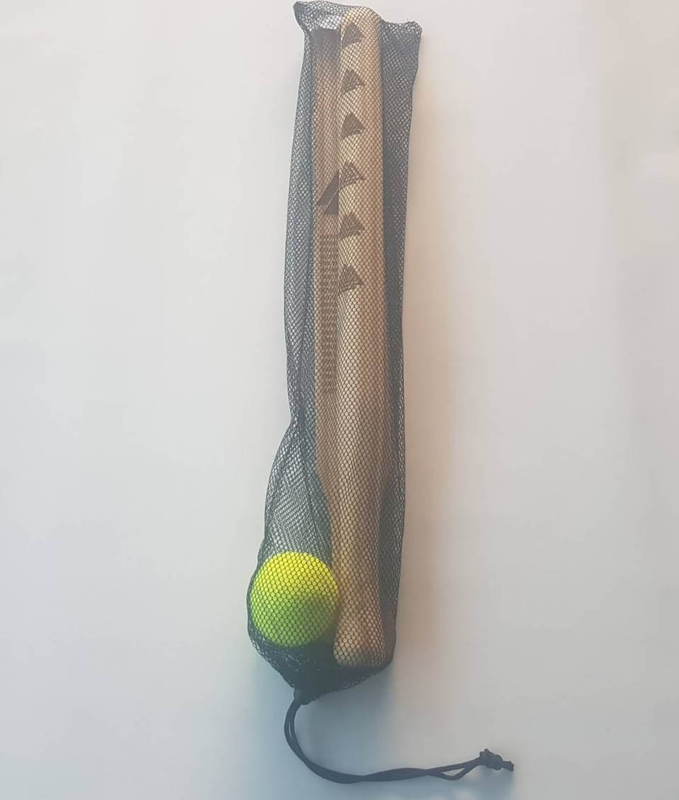 Detta tjusiga brännbollset är dekorerat med Valknutar. Brännbollsetet innehåller ett vanligt slagträ, ett platt slagträ och en boll. Det platta slagträdet har en Valknut och en beskrivning Valknut. Det runda slagträdet är dekorerat med olika Valknutar. En praktisk förvaringspåse ingår.