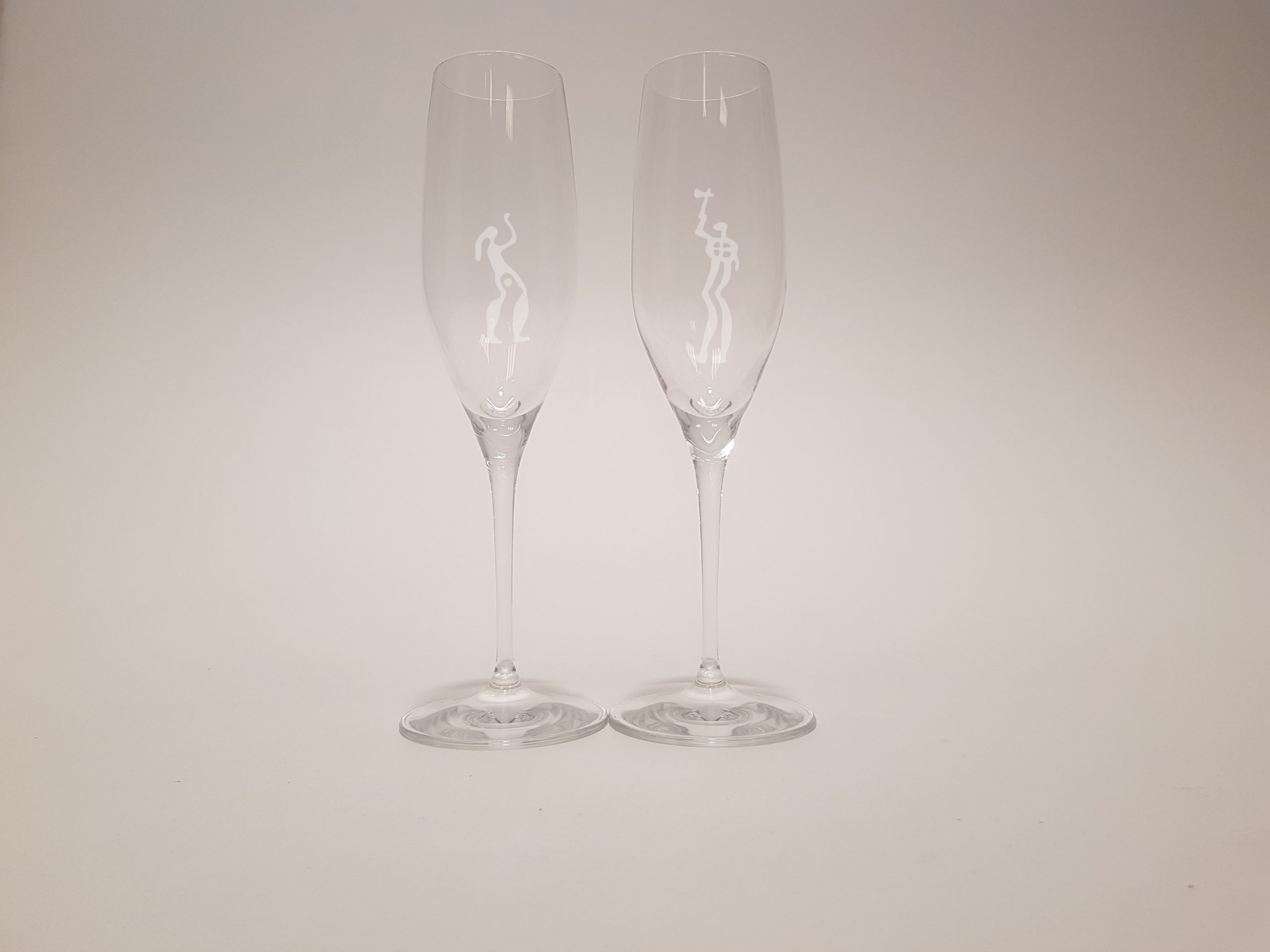 Exklusiva glas tillverkade i Tyskland av Spiegelau. Motiven är skapade och graverade i Sverige. Perfekt som gåva vid exempelvis bröllop, student, förlovning eller till din partner. Spiegelau har en lång tradition av glastillverkningen och detta vinglas är framtaget av deras glasmästare med syfte att maximera upplevelsen av vinet. Just dessa glas är speciellt framtagna för mousserande vin.