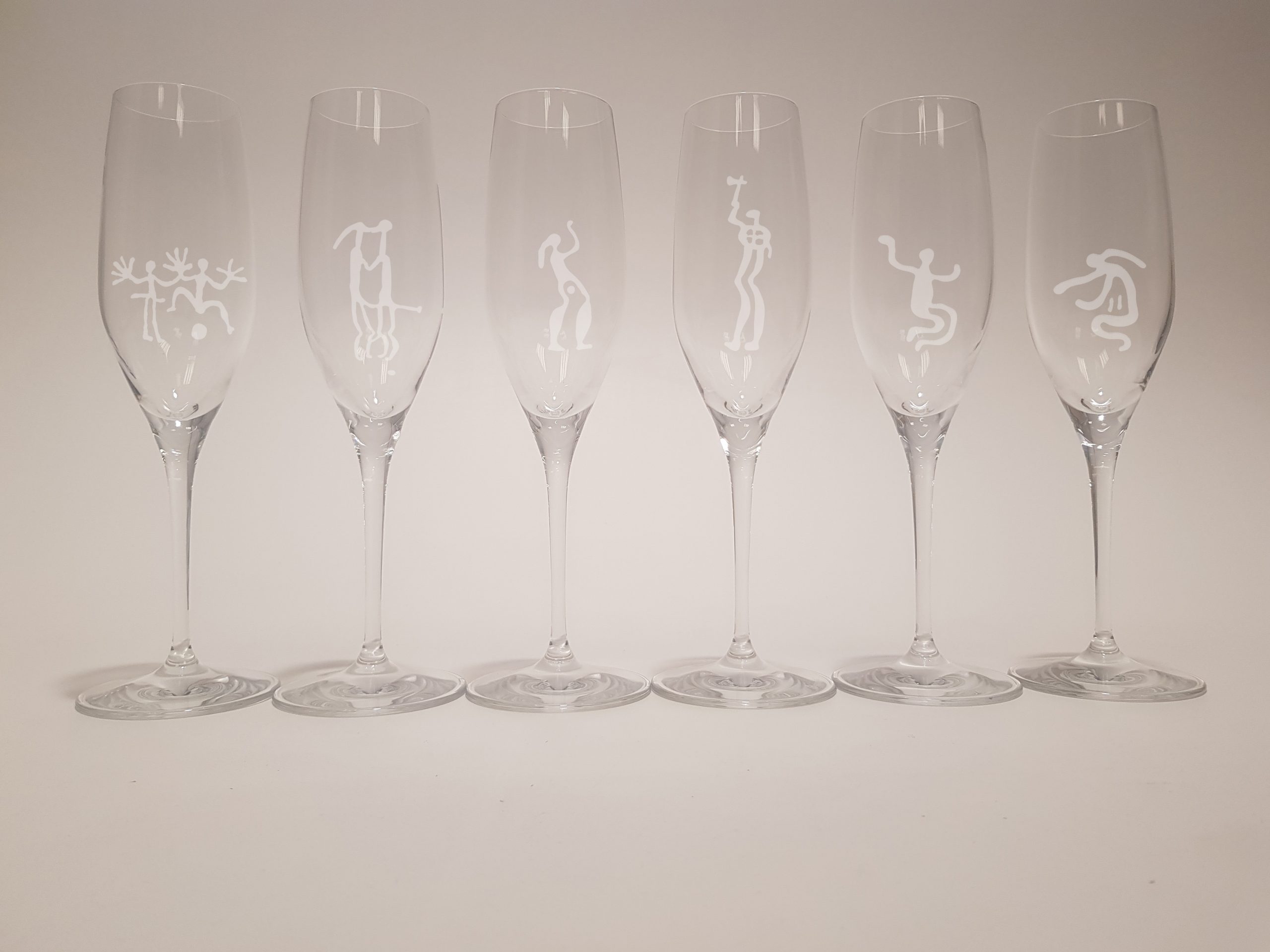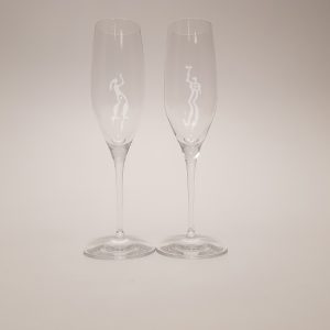 Exklusiva glas tillverkade i Tyskland av Spiegelau. Motiven är skapade och graverade i Sverige. Perfekt som gåva vid exempelvis bröllop, student, förlovning eller till din partner. Spiegelau har en lång tradition av glastillverkningen och detta vinglas är framtaget av deras glasmästare med syfte att maximera upplevelsen av vinet. Just dessa glas är speciellt framtagna för mousserande vin.
