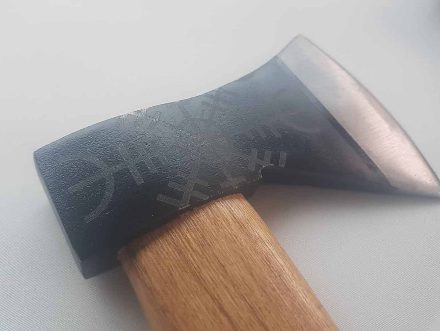 Du kan också välja att lägga till personlig gravyr på baksidan av yxans huvud. Exempelvis ett namn eller ett budskap till någon du tycker om.