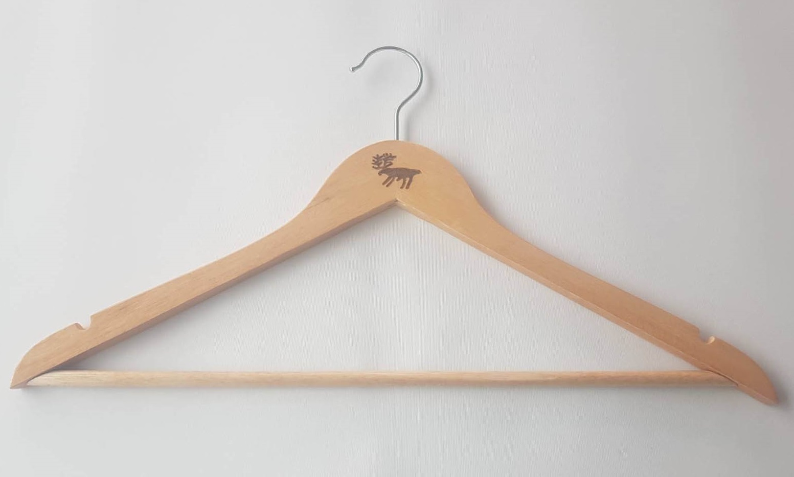 Vacker galge tillverkad i trä och rostfritt stål och dekorerad med en hällristning. Galgen är 45 cm bred och 22 cm hög. Galgen är graverad, sandpapprad för hand och inoljad med svensktillverkad paraffinolja i Sverige. Beskrivning av motivet på galgen: