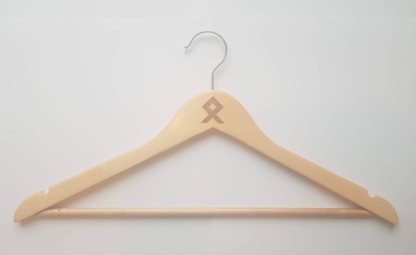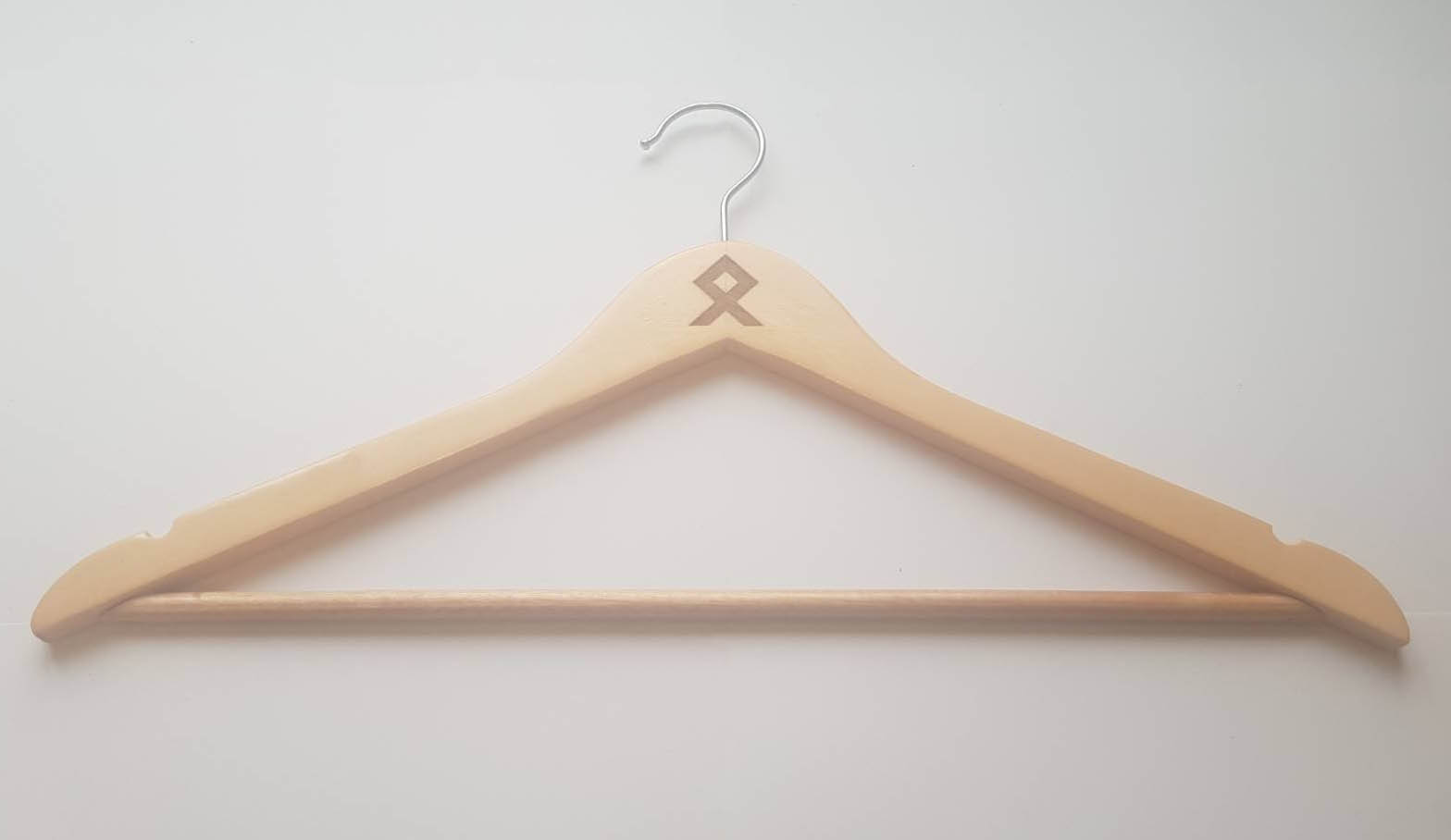 Vacker galge tillverkad i trä och rostfritt stål och dekorerad med Odalrunan. Galgen är 45 cm bred och 22 cm hög. Galgen är graverad, sandpapprad och inoljad med svensktillverkad paraffinolja i Sverige. Beskrivning av motivet på galgen: