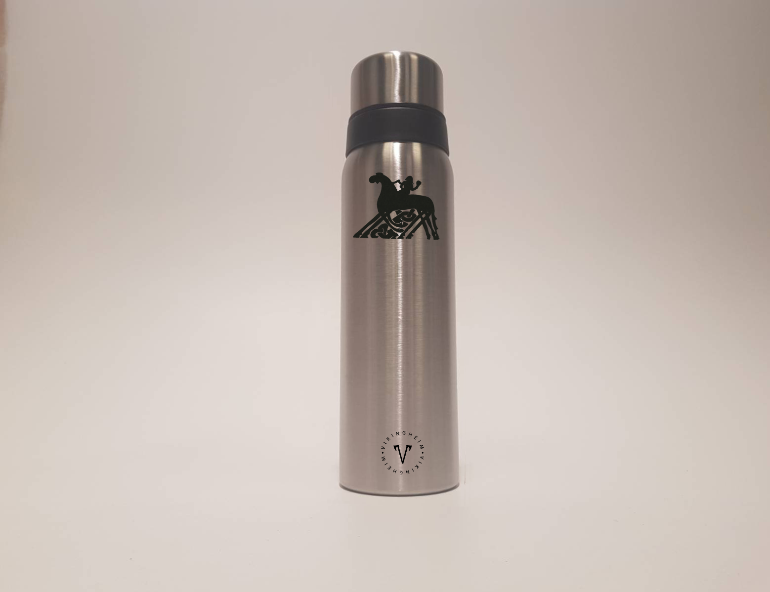 Ståltermos med borstad yta. Kompakt design och autokork för praktisk användning. Motivet är i snyggt Mattsvart. Motivet föreställer sannolikt Sleipner, Odens berömda häst. Sleipner är grå och har åtta ben. Han är världens snabbaste häst och kan springa både på land, i luften och på havet.